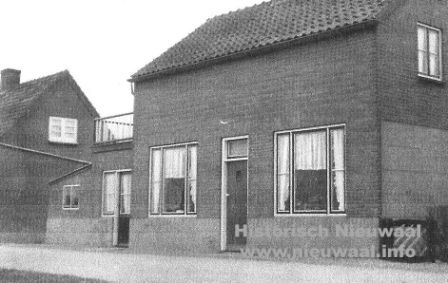 Op zaterdag 8 juni 1935, de dag voor pinksteren, verwoeste een felle brand in Nieuwaal 6 woningen. Links de muren van het huis van Jan van Steenbergen, waar de brand was ontstaan. Over de muren heen is de schuur van winkelier W. Verhoeks te zien. Het hekje op de voorgrond hoorde bij het huis vanAndries van Steenbergen. Daar achter de resten van het huis van A. Kuijntjes. Op de achtergrond de toen nog betrekelijk nieuwe muziektent.