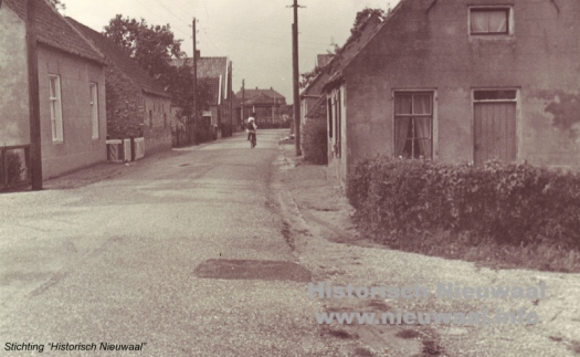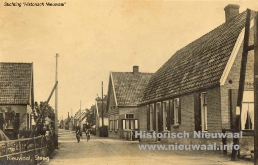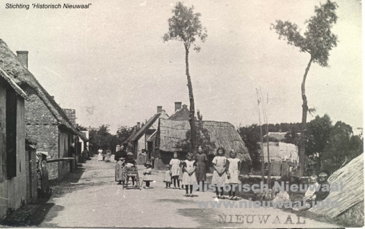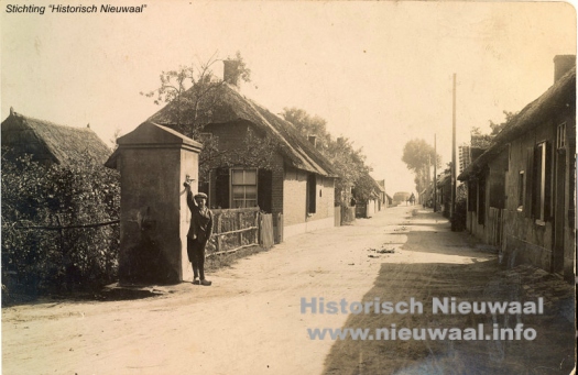 Dorpsstraatbeeld begin 1900 met een afbeelding van de Breede Steeg, thans Jacob Ekelmansstraat in Nieuwaal.