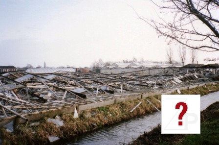 Soldaten helpen met het opruimen van het glas van de kapot gewaaide kas bij Anton van Steenbergen.