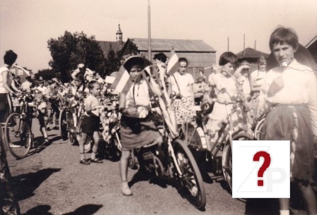 De eerste vrouw vanaf links is Clara Jonkers daarnaast met veel bravoure Arie Verhoeks hij liep met de fotograaf mee. Met klederdracht Drik Bok (Hendrika Bok – van Hemert) met daarnaast haar dochter Jaantje van Steenbergen – Bok dan Grietje (Grieta Catrina) Timmer (Hdr), Catrinus Timmer Hzn ( de ruis) dan de grote man met pet is Arie van Vugt sr. Dan van de kinderen met hoedje op Grietje Judina Timmer (van de bakkers).