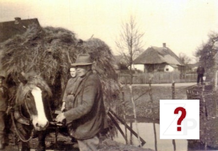 Op de kar staat Kees van Leeuwen, de man met het tuig is Willem Bok.