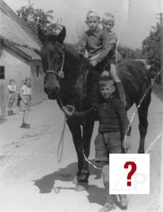 Aan de Kerkstraat ter hoogte waar nu het trefpunt is met op het paard Gerrit Baijnse (met pet) en Arie Roza het word geleid door Leo van Hemert.