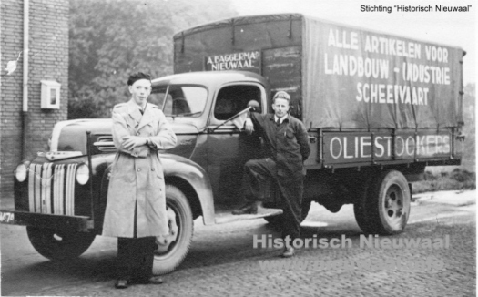 Links voor de wagen Arie van Hemert en Leen van Wijgerden.