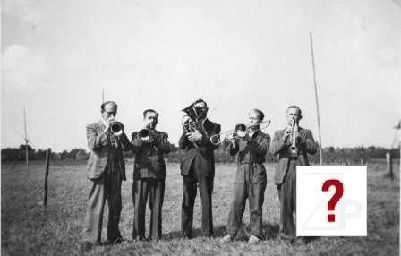 Han Baijense, Cornelis Gijben, Cor Ekelmans, Andre van Hemert, Broer van der Leij, en ? de Joode (tamboer uit Herwijnen).