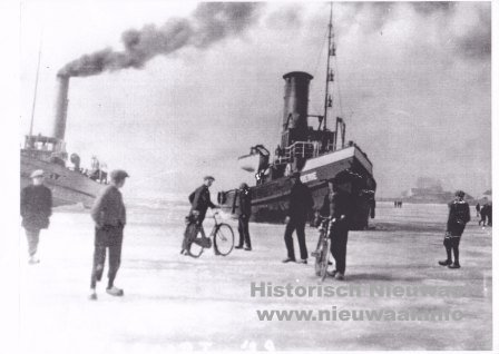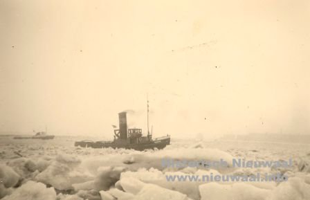 Twee ijsbrekers op de waal, de rechter is de “Siberië” en de linker de “Christiaan Brunings”.