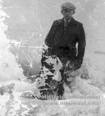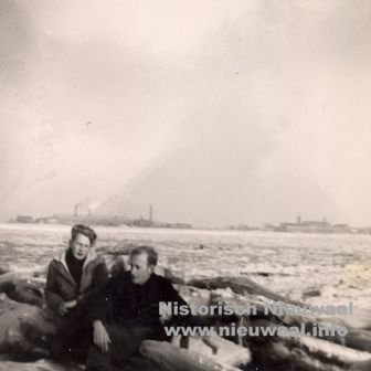 Cor Ekelmans op de ijsschotsen van de Waal.