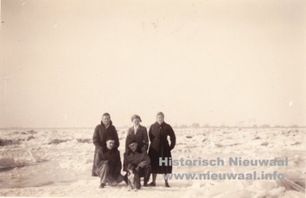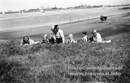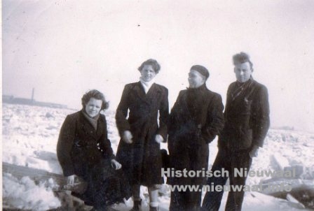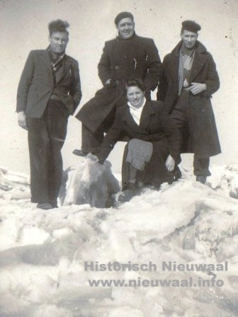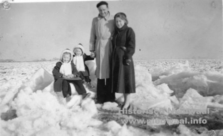Jo Versteeg en zijn vrouw Marie van Hemert met hun kinderen Nees en Riet tussen de schotsen op de waal.