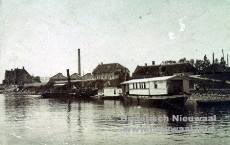 Links het huis van fam. den Hertog daarnaast het schipperhuis van Anton Baggerman met tegen de dijk aan zijn parlevinkerboot.