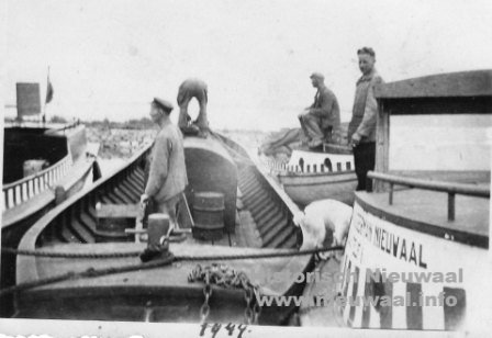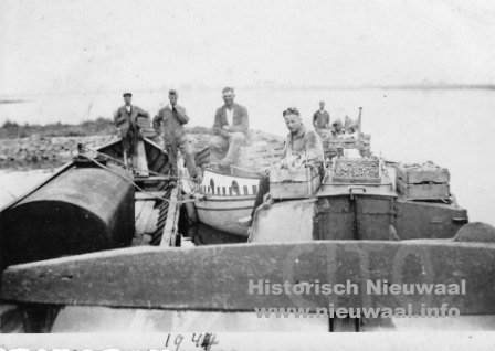 Buitenaf werkers van v. Anrooij langs de dijk bij Vuren.