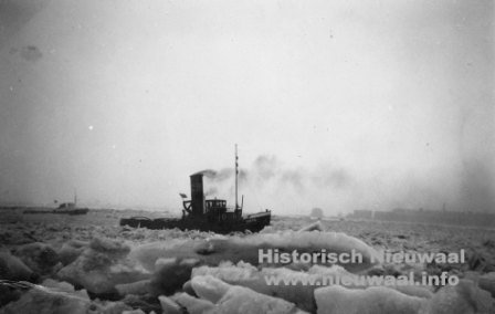 In 1963 braken ijsbrekers de waal weer open met op de voorgrond de’Siberië’.