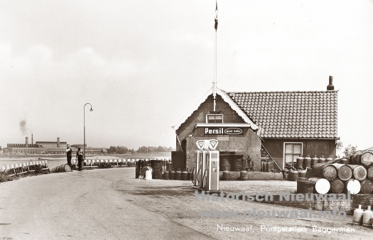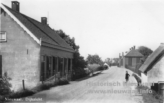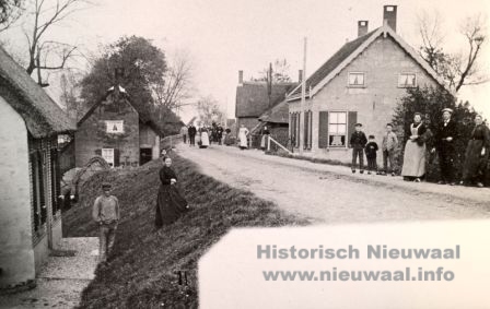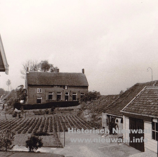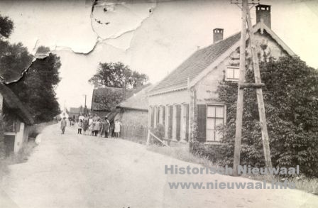 Het huis rechts werd gewoond door schipper Rochus van Rumpt die aardappelen vervoerde naar Den Haag. Toen in 1923 is het huis afbrande werd het bewoond door Jan van Hemert. Het rechterdeel van het huis werd gebouwd op de fundamenten van het herenhuis van steenfabriekant H.A.M. Versteegh. In 1939 werd het huis aangekocht door de gez. Baggerman. Het witte gebouwtje links is het dijkmagazijn, daar naast het huis van P.J. Maas. Het witte huis op de achtergrond was van aannemer van Anrooij. De twee emmers op de voorgrond behoorden vermoedelijk bij een van de dames op de foto.