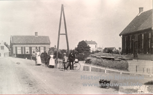 Rechts het huis van broodbakker Timmer en de hooiberg van Dirk van Pouderooijen.