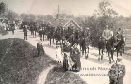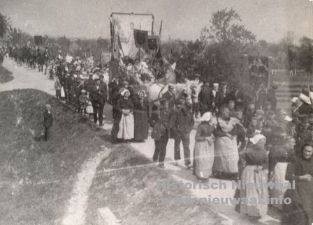 Optocht Waalbandijk ter gelegenheid van de kroning van Koningin Wilhelmina in 1898.